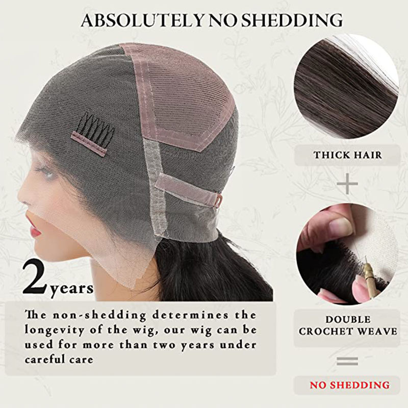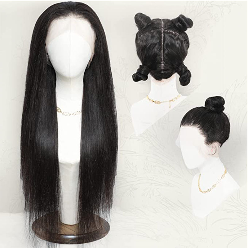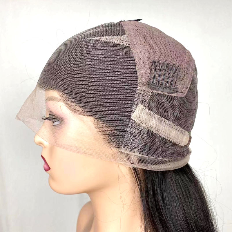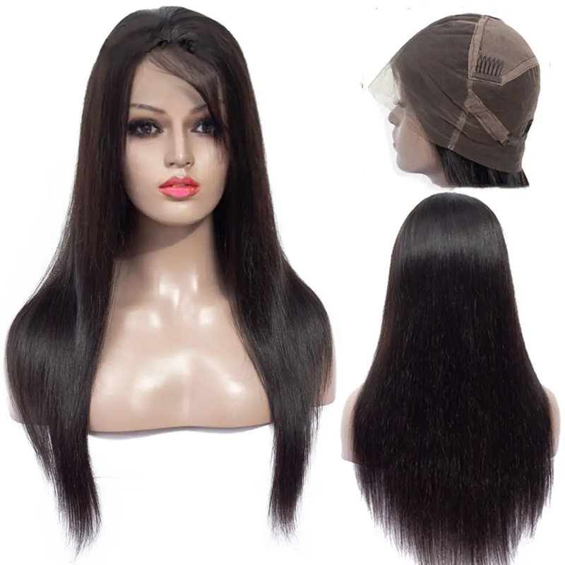 Qmiss Straight Full Lace Wig Straight Human Hair Wig 100% Unprocessed Natural Black